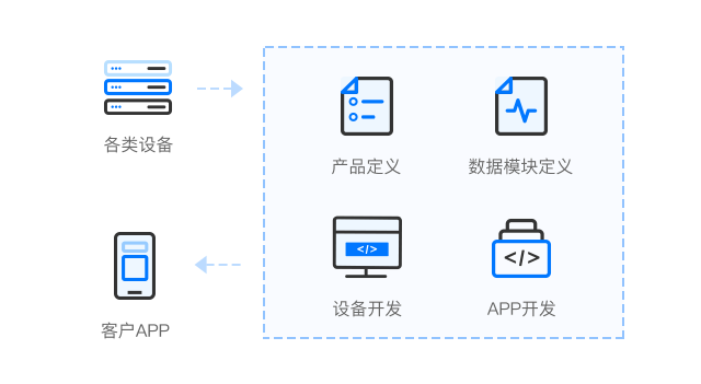系统基于一个软件端(APP/小程序/公众号等)控制相关的设备端,包含智能家电、智慧校园、医院、智能停车、智慧物业(门禁/监控等)应用领域所对接的所有硬件设备;